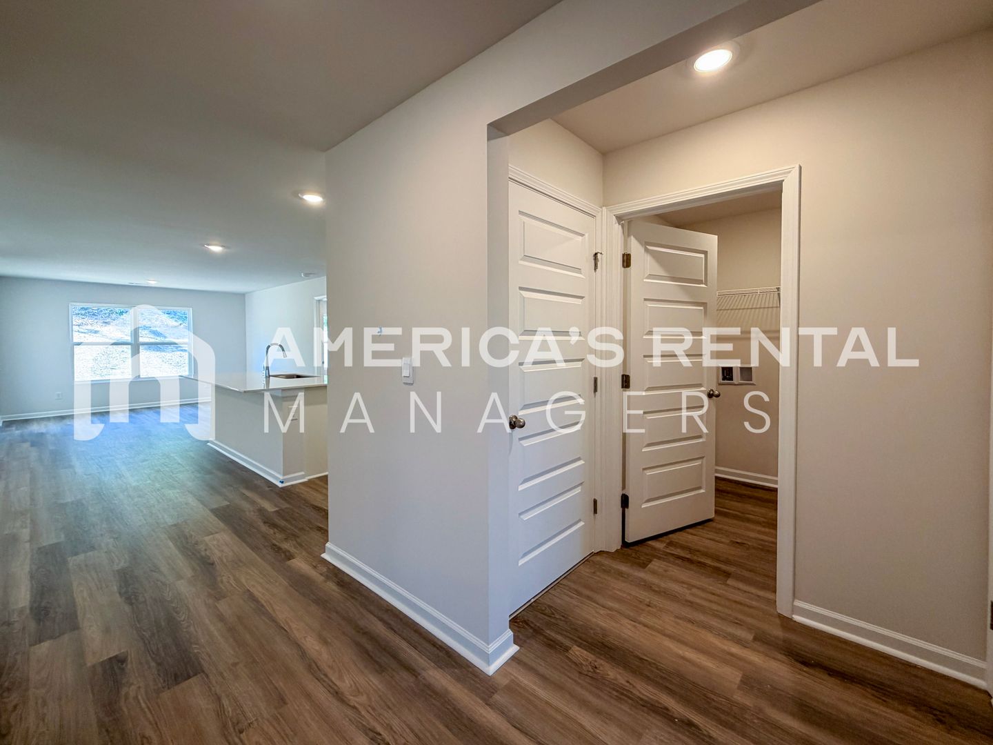 The inviting single story layout is highlighted by luxury vinyl plank flooring throughout the common areas and an open concept kitchen that serves as the heart of the home. You will enjoy a gourmet kitchen equipped with granite countertops, a center island, and a spacious walk in pantry. Each of the three bedrooms provides soft carpeted flooring while the primary suite offers a private sanctuary with an ensuite bathroom featuring quartz countertops and a walk in closet.