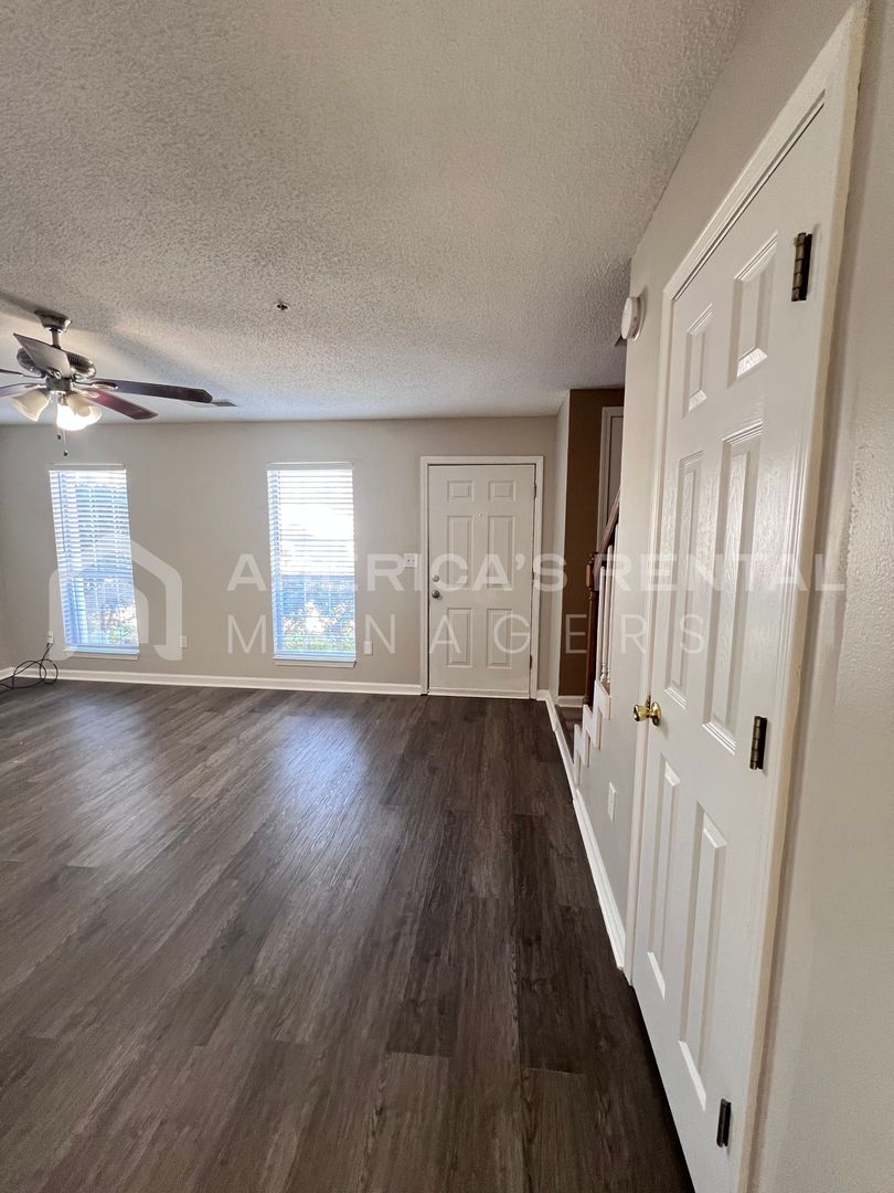 Charming and move-in ready, this 2-bedroom, 1.5-bath townhome is perfect for those seeking comfort and convenience. The main level features a spacious living room and a large kitchen with a dining area, complete with washer and dryer connections discreetly tucked in a closet. Step outside to your private, fenced-in backyard with a storage closet, perfect for outdoor enjoyment. Upstairs, both bedrooms share a full Jack-and-Jill bathroom and offer ample closet space for all your storage needs. This home is ideal for low-maintenance living!