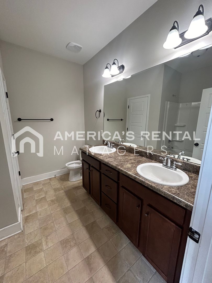 Beautiful, spacious 4 bedroom, 2 bath with 2 car garage available for rent! Open kitchen with large island, pantry, recessed lights and tons of cabinet space. Large master bedroom with large walk-in closet and master bathroom with double vanity. 2 additional guest bedrooms on main floor with ample closet space. 2nd level guest bedroom has walk-in closet. Storage space in attic on 2nd level and storage closet in 2 car garage. Large patio - great for grilling and entertaining!