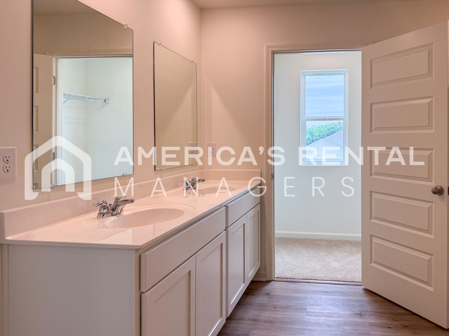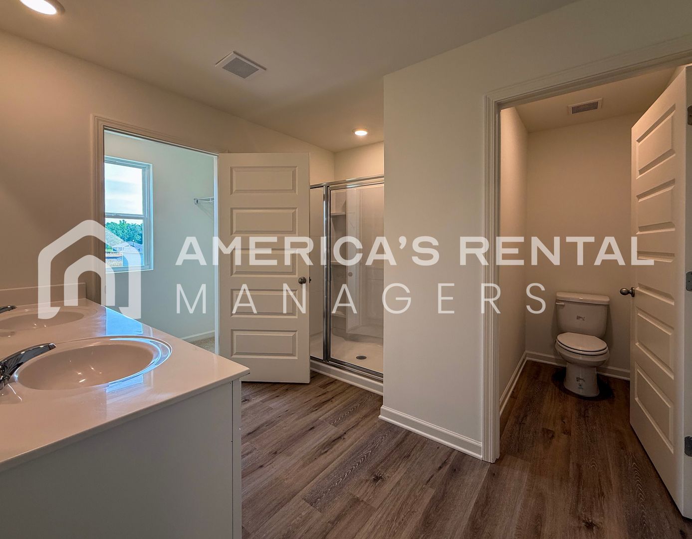 Private Primary Suite: Located on the second floor, the primary bedroom features a walk-in closet and an en-suite bathroom with double vanities and a walk-in shower.