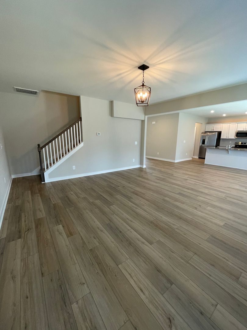 Two level home has an open floor plan with beautiful hard surface flooring. The large living room is great for entertaining and the open kitchen has tons of cabinet space, kitchen nook area, an island and pantry for additional storage space. Three guest bedrooms and master bedroom suite. Each guest bedroom is roomy and has ample closet space. The master bedroom suite is privately located at the back of the house and features a large bathroom and walk in closet.