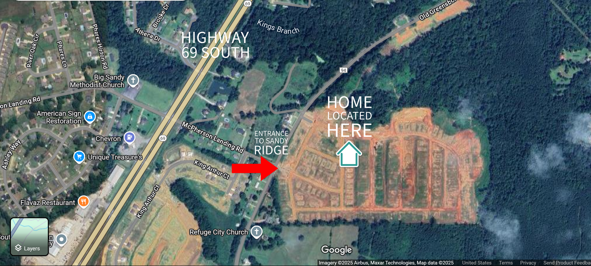 Sandy Ridge Neighborhood: A fresh D.R. Horton development off AL-69 S, offering a quiet escape with quick access to Tuscaloosa’s vibrant amenities.