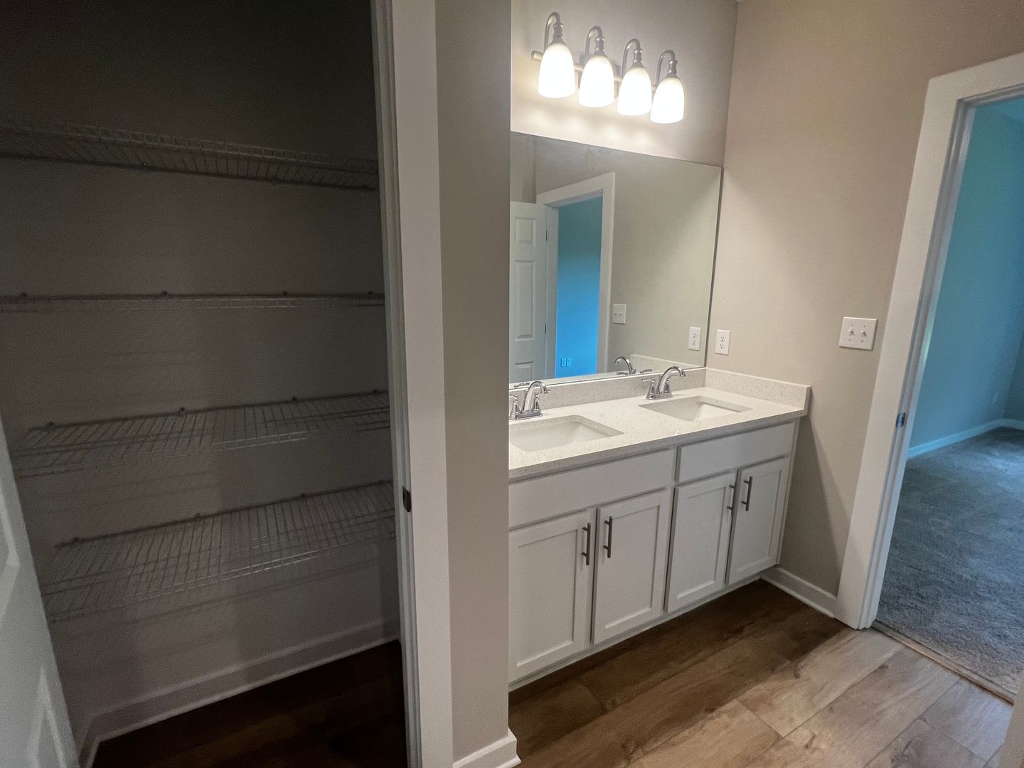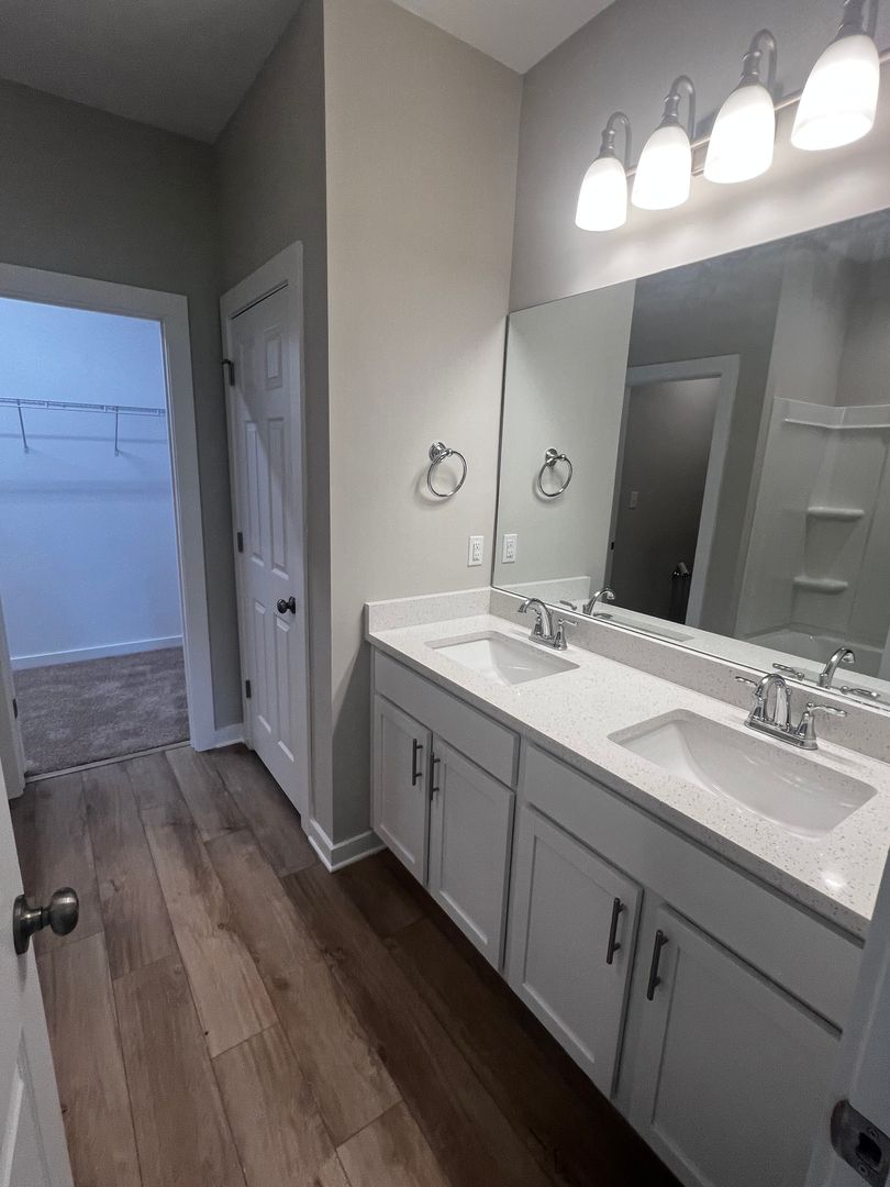 Home featuring 4 bedrooms and two full bathrooms, including a well-appointed Master Suite, this home is spacious and stylish. The Ashland plan offers a generous layout with the convenience of main level living and an attached double garage. Designer finishes include LVP flooring in the main living areas, carpet in the bedrooms, painted cabinets in the kitchen and bathrooms, Venetian marble countertops throughout, and stainless steel appliances. Start packing - your new home awaits!