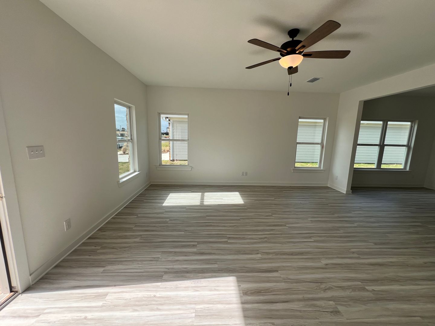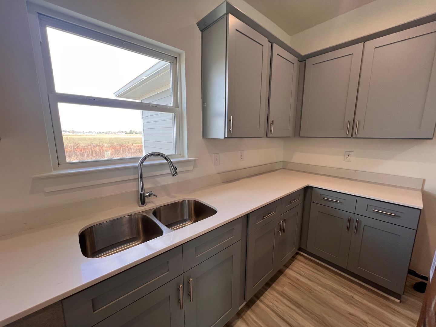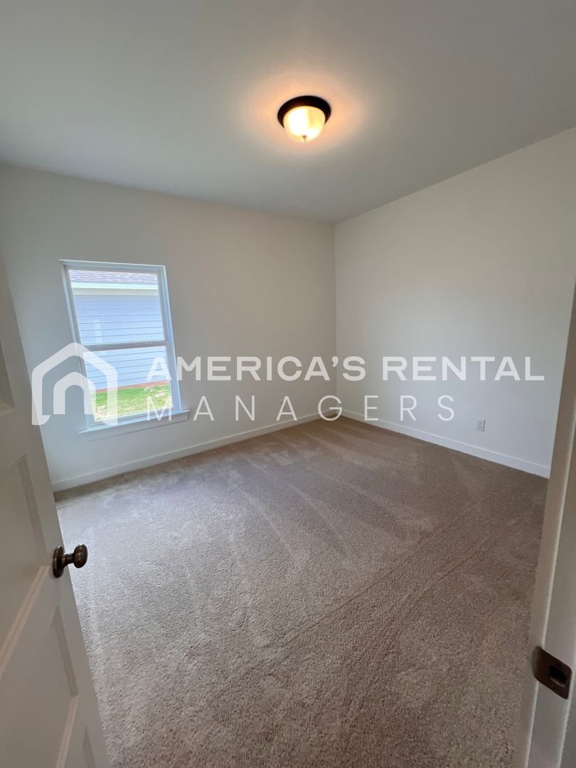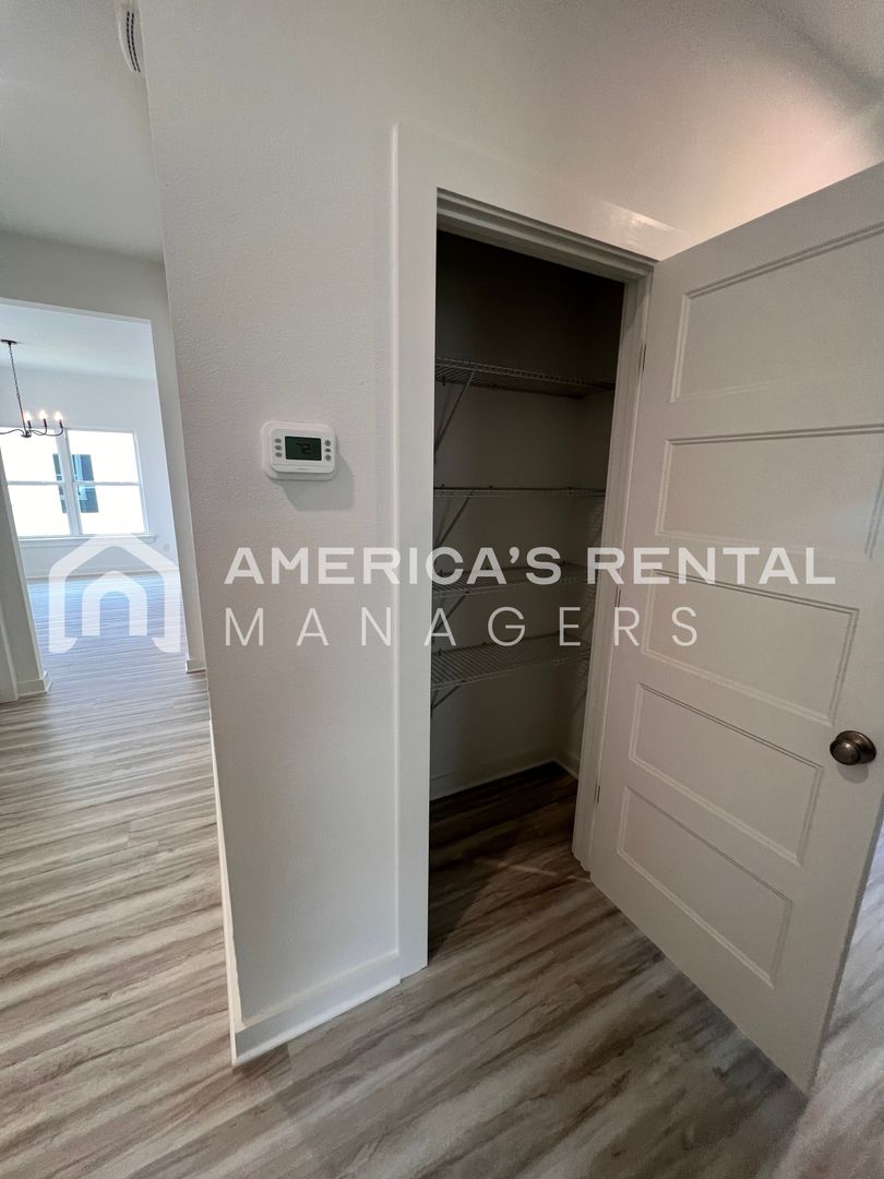 One level home has an open floor plan with beautiful hard surface flooring. The large living room is great for entertaining, and the open kitchen has tons of cabinet space, kitchen nook area, an island and pantry for additional storage space. Three guest bedrooms and master bedroom suite. Each guest bedroom is roomy and has ample closet space. The master bedroom suite is privately located at the back of the house and features a large bathroom with double vanity and walk in closet. Pet friendly home.