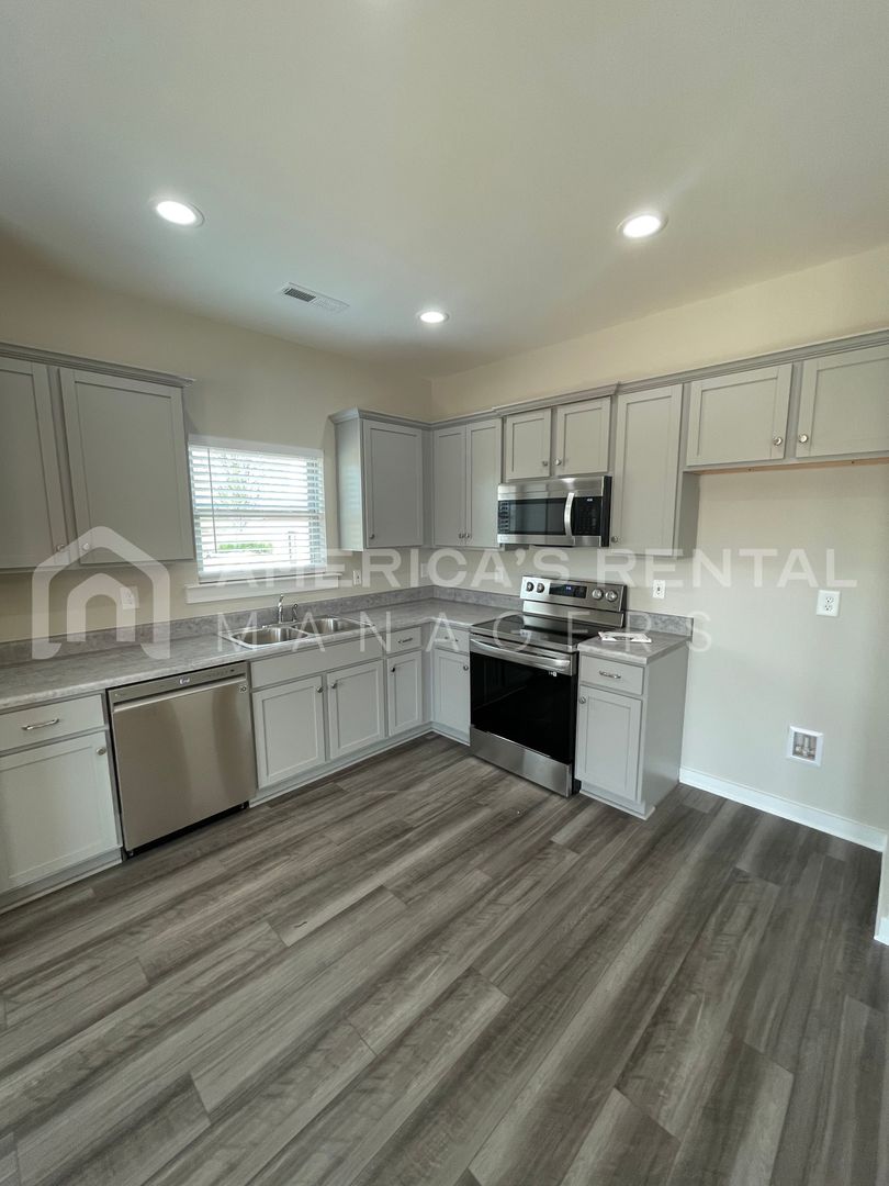 This spacious floor plan boasts offers designer finishes throughout. Featuring vaulted ceilings in the living room, an open-concept kitchen and breakfast nook, and split bedrooms. The Primary Suite includes a spacious bathroom and walk-in closet, and the two additional bedrooms are nicely sized and located between a shared, full guest bathroom. This plan also includes a large office - perfect for your work-from-home setup! Finishes include LVP flooring in the main living areas, carpet in the bedrooms, painted cabinets throughout, quartz countertops, and stainless steel appliances - this home has so much to offer! **Square footage is approximate**