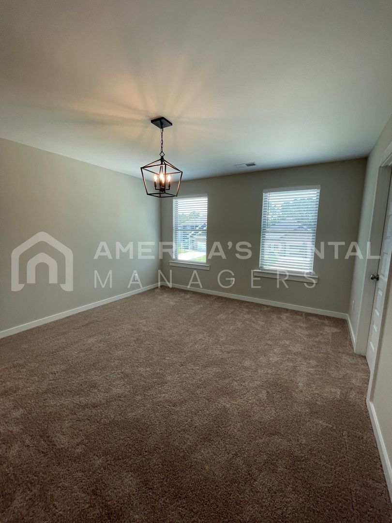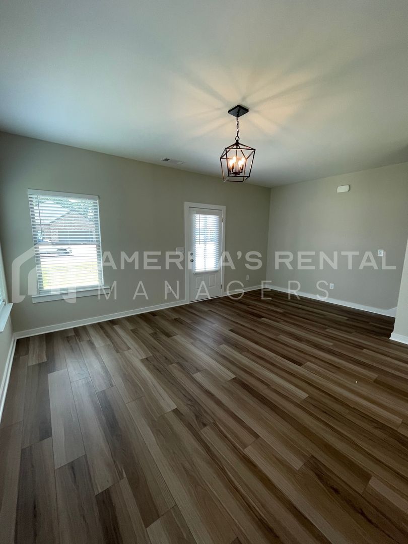 Spacious 5-bedroom, 3-bathroom two level home has an open floorplan with beautiful hard surface flooring. The large living room is great for entertaining, and the open kitchen has tons of cabinet space and a large pantry for additional storage space. A great dining area facing the back yard with plenty of natural light is located between the living room and the kitchen. Four guest bedrooms and a master bedroom suite. Each guest bedroom is roomy and has ample closet space. The master bedroom suite features a bathroom and a large walk-in closet. The backyard patio is accessible from the kitchen; perfect for grilling! Square footage is approximate.