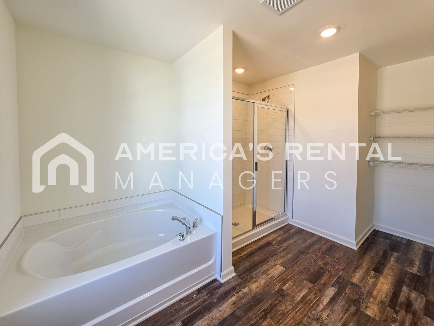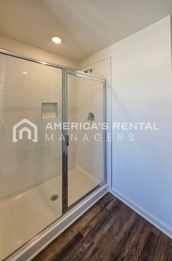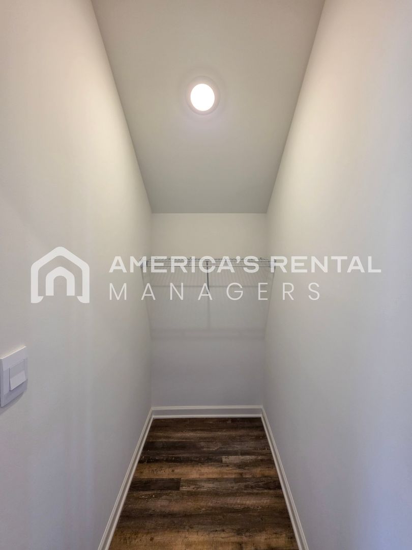 Upstairs, the primary suite serves as a private retreat with a garden soaking tub, separate shower, and double vanities. Please Note: Photos with a ✦ have been virtually staged to showcase the home's potential. The property is rented unfurnished.