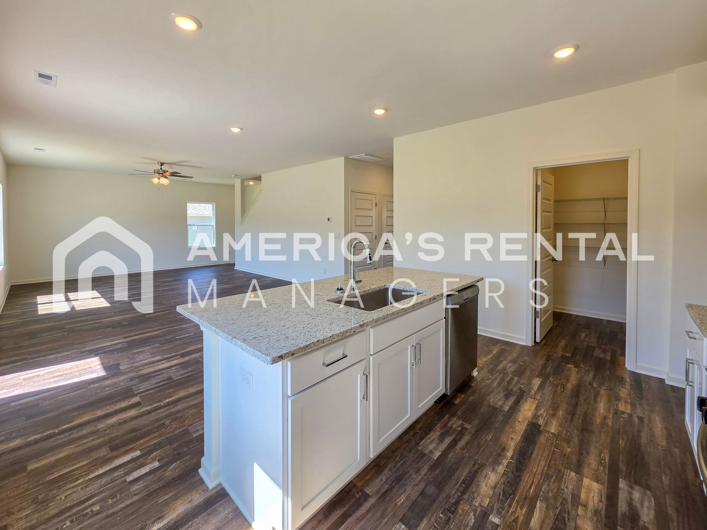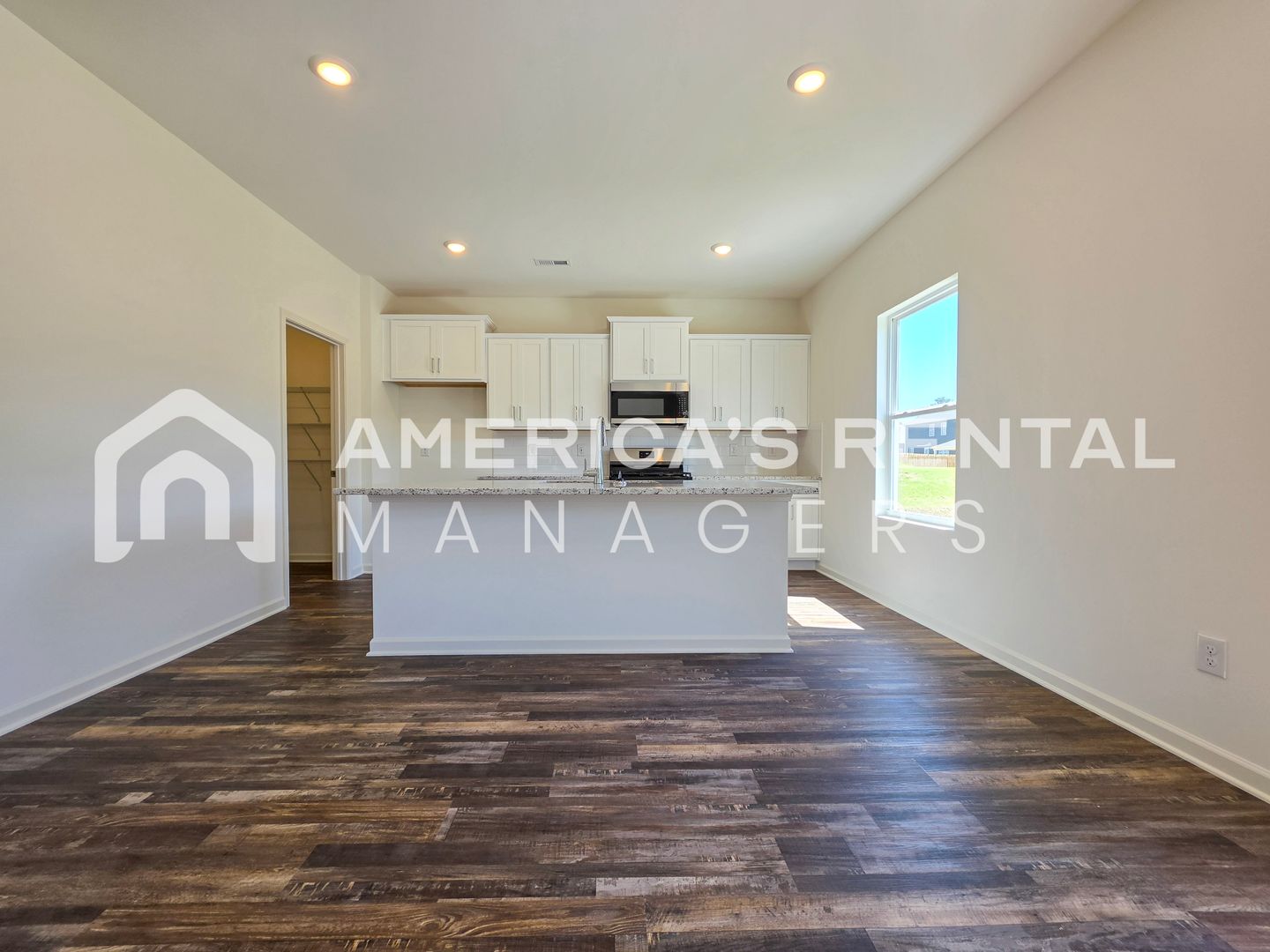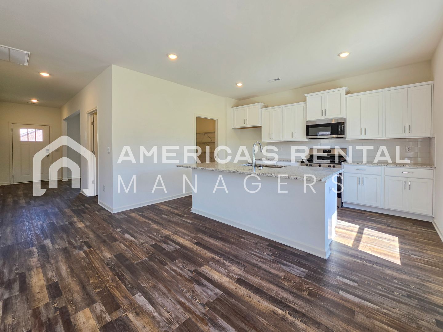 The spacious two story layout features four bedrooms and two and a half bathrooms, highlighted by an open concept main level that connects a chef inspired kitchen to an expansive living area. The kitchen is equipped with granite countertops, a large breakfast island, stainless steel appliances, and a walk-in pantry. Additional main floor features include a versatile flex room perfect for a home office and a convenient two car garage.