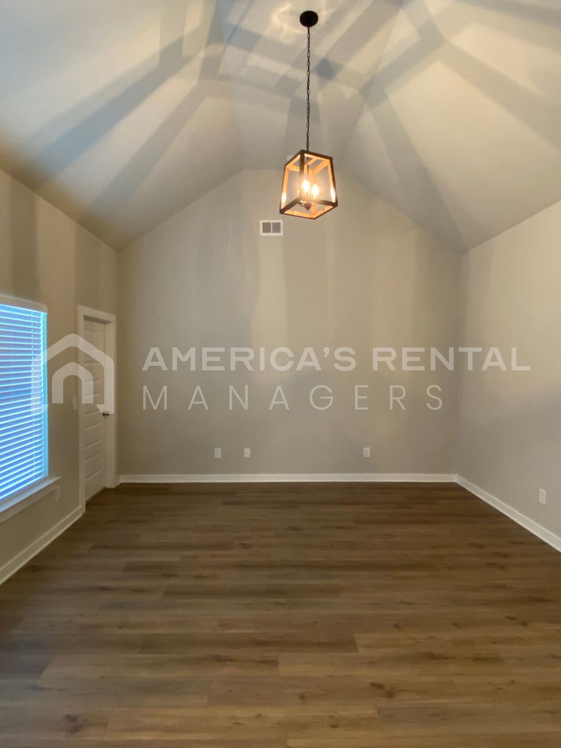 Located in the Avalon subdivision. One level home has an open floor plan with beautiful hard surface flooring. The large living room is great for entertaining and the open kitchen has tons of cabinet space, kitchen nook area, an island and pantry for additional storage space. Three guest bedrooms and master bedroom suite. Each guest bedroom is roomy and has ample closet space. The master bedroom suite is privately located at the back of the house and features a large bathroom with double vanity and walk in closet. Pet friendly home.