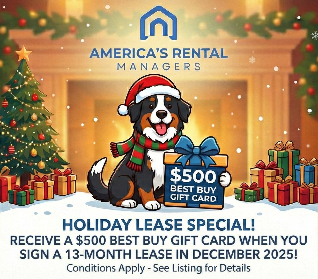 Sign a lease by 12/31/2025 to receive ONE FREE MONTH prorated over a 13 Month Lease for a DISCOUNTED RENTAL RATE of $1,380/Month (Market Rental Rate = $1,495/Month) AND HALF OFF DEPOSIT with a BONUS $500 BEST BUY GIFT CARD!!