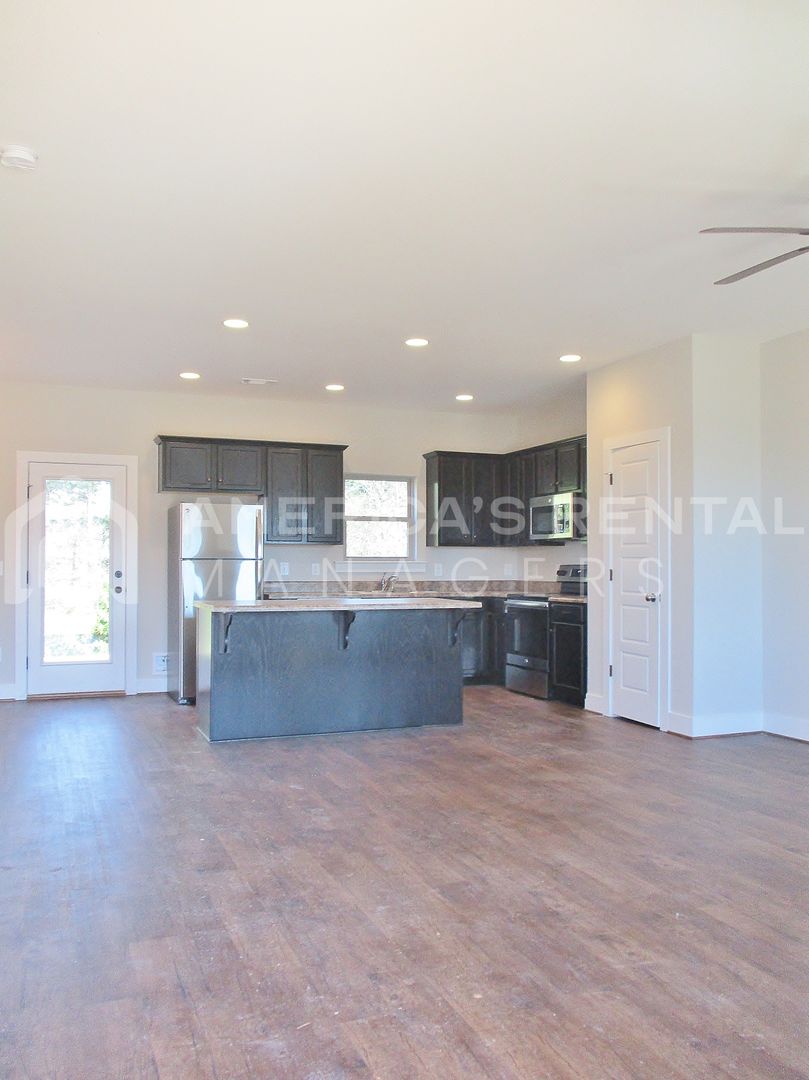 Open floor plan with kitchen, recessed lights, and an island and pantry for additional space! Large living room with beautiful floors, eat-in-kitchen, walk-in laundry, and 1/2 bath on main level! Master bedroom suite and two guest bedrooms on second level. Covered front porch, private patio area; great for grilling or entertaining.